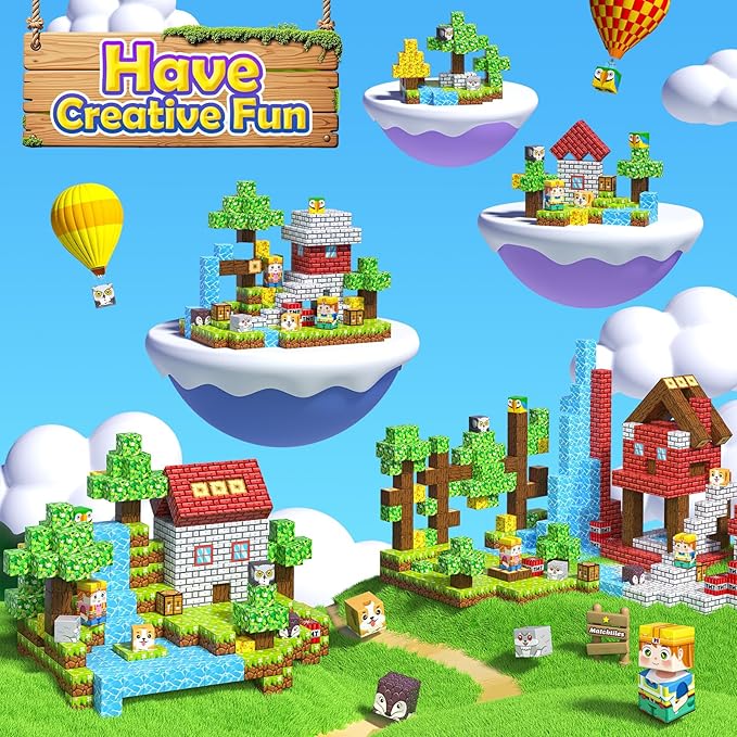Magnetic Blocks with Forest Animals Toys, Build Mine Magnet World Set, Magnetic Tiles Building for Boys & Girls Age 4-8 5-7, STEM Montessori Sensory Toys for Toddlers Kids Gifts for 3+ Years Old