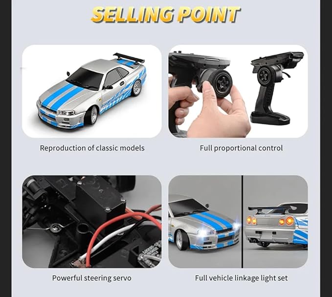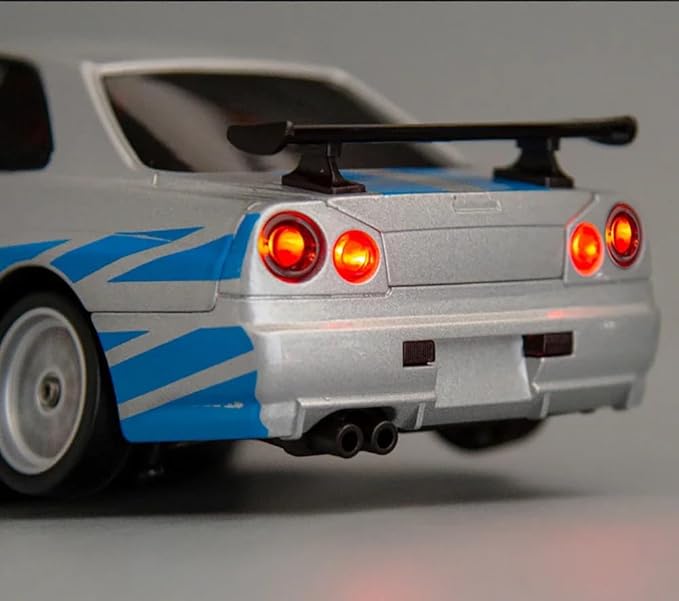 LD1899 1:18 RC Drift Car GTR R34 2.4GHz RWD with Gyroscope on-Road Alloy Body Shell Racing Cars Radio Control (Silvery)