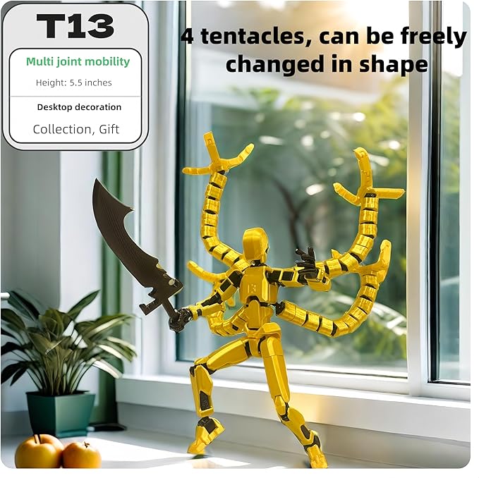T13 Action Figure Assembly Completed, Upgraded 3D Printed T13 Action Figure, The Dummy 13 is Very Suitable for Office Desks and Birthday Cake Decorations (Yellow)