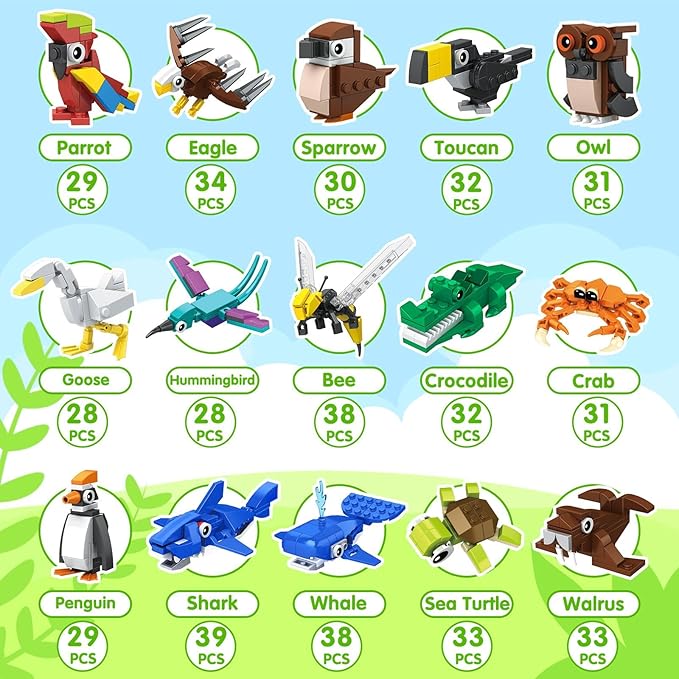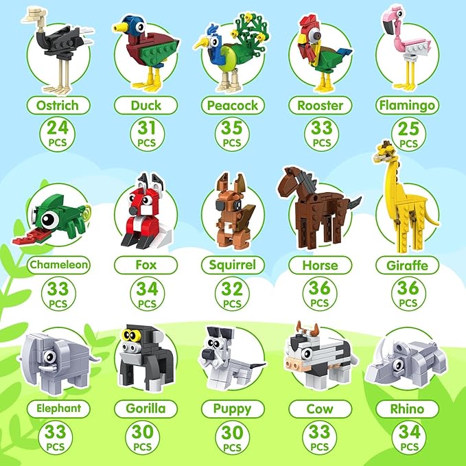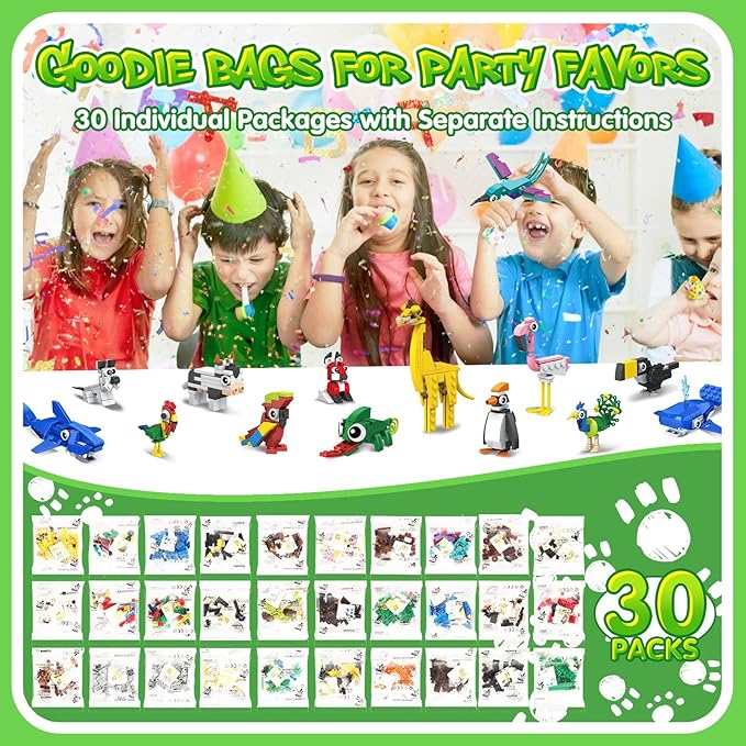 About This 【Separate Bags with Individual Instructions】1,032 pieces animal building blocks, perfect for kids party favors. Includes 30 unique animal... Read more