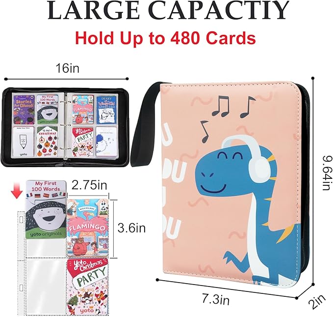 Yoto Card Holder for Yoto Player Cards,480 Pockets Large Capacity Card Case Binder,Portable Waterproof Card Storage Bag with Removable Sleeves for Yoto Story Mini Player Cards