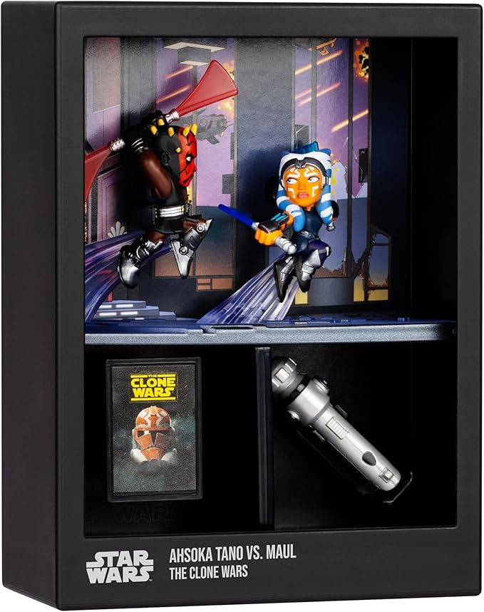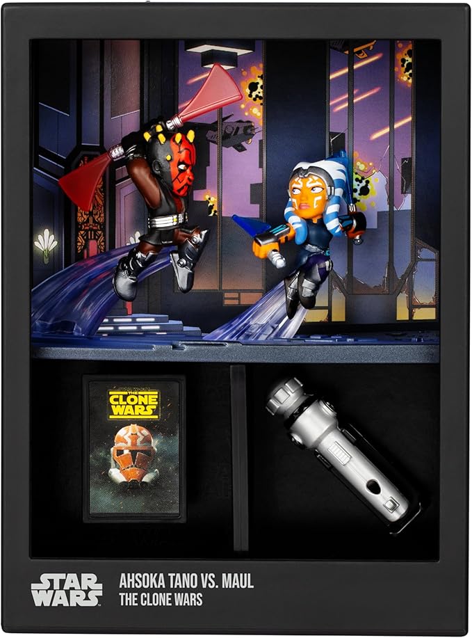 Fandrop SW02-Star Wars: The Clone Warsâ - Ahsoka Tano VS. Maul Combines an Epic Diorama, Artifacts & Scene Marker Creating A Display to Enhance Collection, 4 to Collect