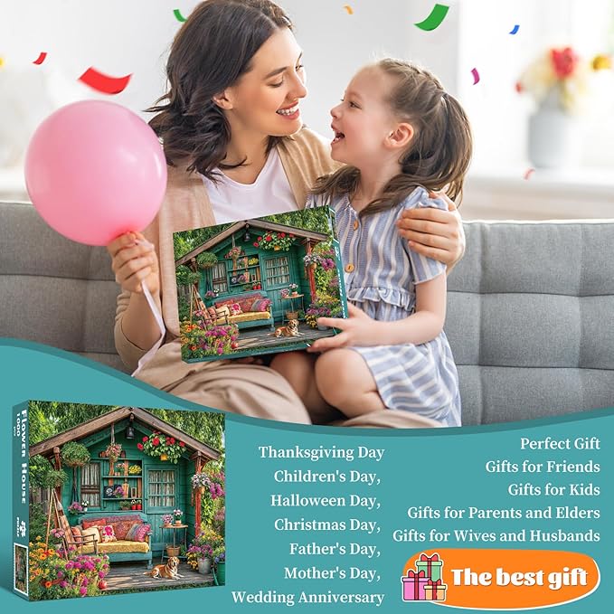 1000 Piece Puzzle for Adults, Flower House Jigsaw Puzzle, Family Puzzles Game, Interlock Perfectly No Dust, Home Decoration Puzzle, Gift for Valentine Friends Parents Kids