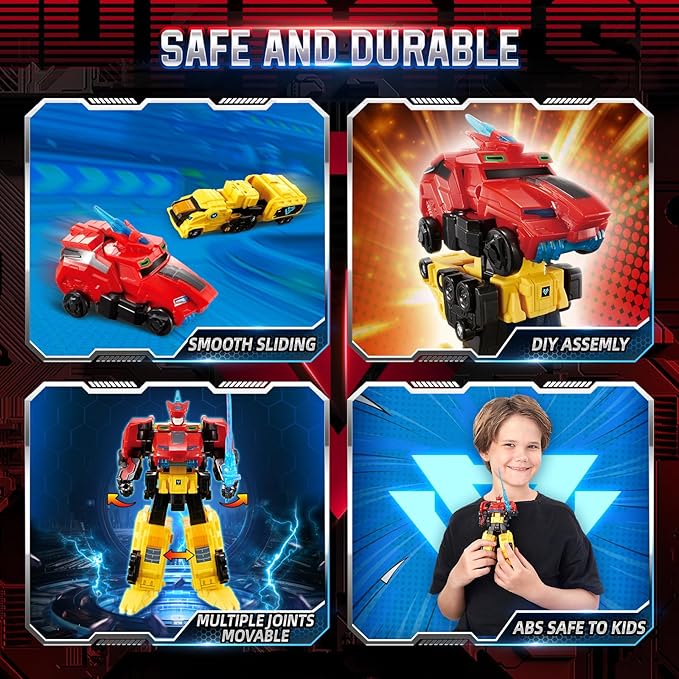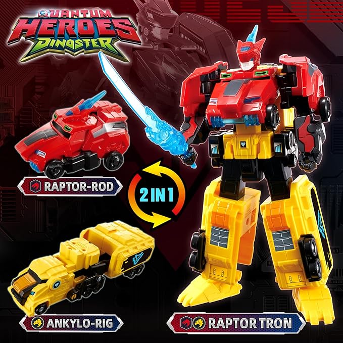 Transforming Toys, 2-in-1 Transforming Robot Raptor Tron, 7.48-inch Action Figure Children's Robot Toy, Cool Transforming Toys for Boys and Girls Age 5+, Red and Yellow