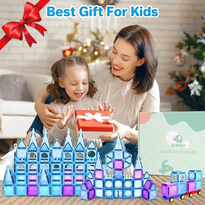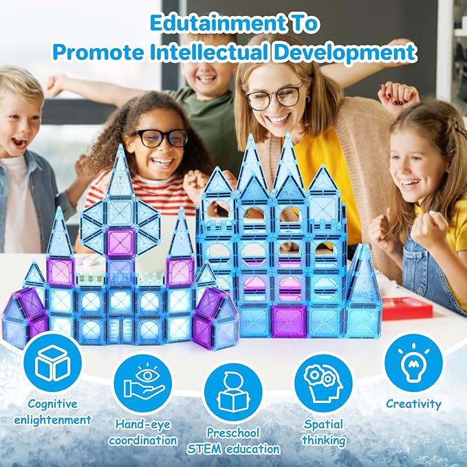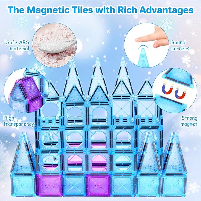 BEBOAN 122 Pcs Magnetic Tiles - Frozen Toys Gift for Kids Toddlers Girls Ages 3 4 5 6 7 8+, Princess Magnetic Building Toys, Castle Magnets Toy, Montessori Stacking Educational Toys for Sensory Play