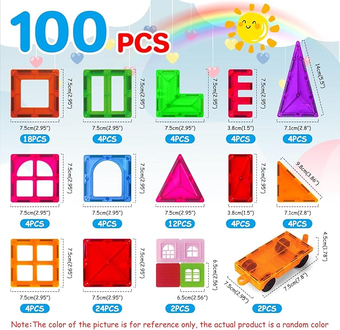 About This [100 Pieces] The magnetic tiles come in a variety of colours and shapes, and the quantity allows children... Read more