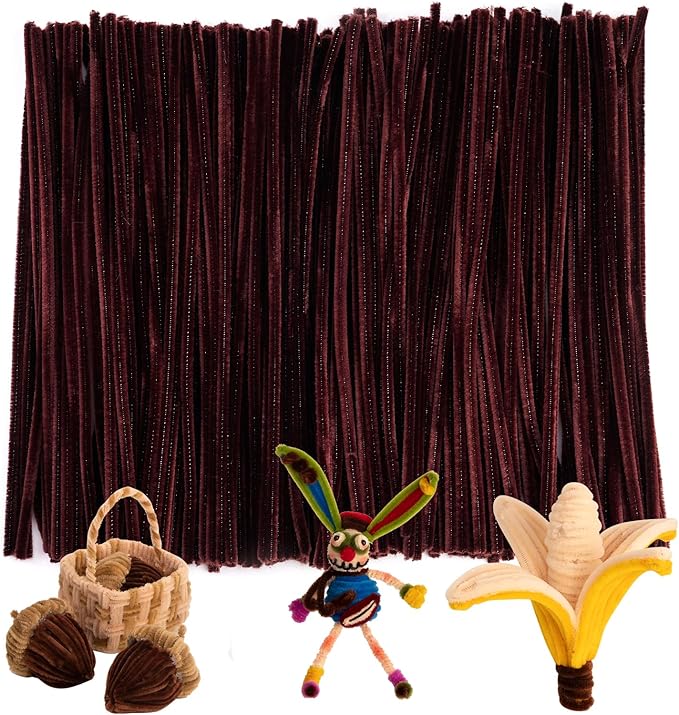 Caydo 200 Pieces Brown Pipe Cleaners Craft Chenille Stems for DIY Art Creative Crafts Party Decorations (12 Inch x 6 mm)