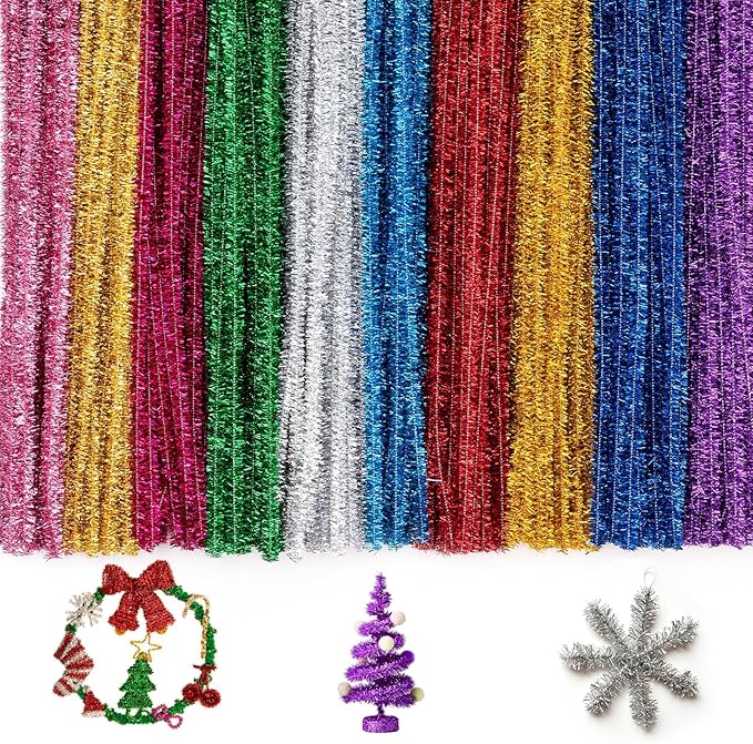 Caydo 200 Pieces Glitter Pipe Cleaners Craft for Kids Creative Art and Craft Project Making, Multicolor Sparkly Chenille Stems for Beaded Jewelry and Valentine's Day Decorations