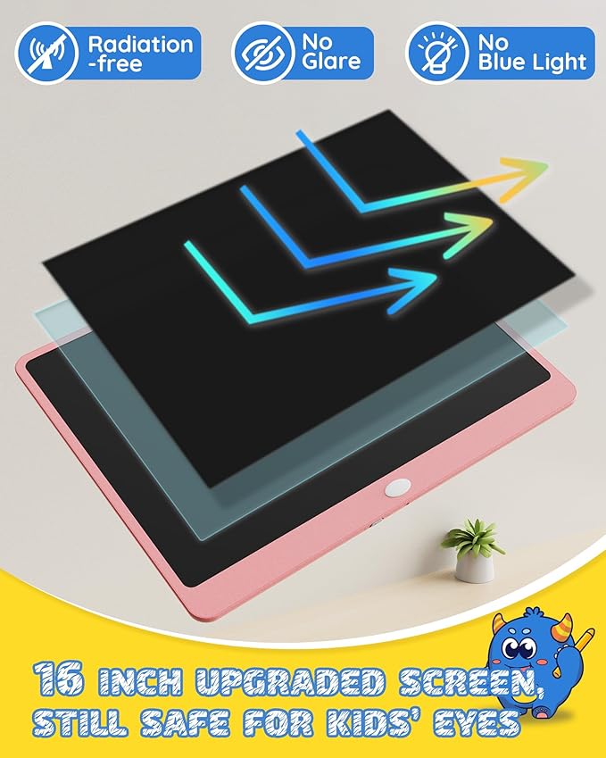 TEKFUN Easter Gifts for Kids, 16inch LCD Writing Tablet Drawing Board, Teen Girl Boy Gifts Age 10 and Up, Birthday Gifts for All Age Groups, Erasable Writing Tablet for Business Meeting (Pink)