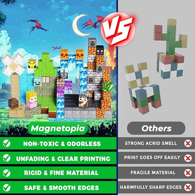 Magnetic Building Blocks - 150PCS Magnet Block Cubes Dark Hell Forest Castle, STEM Toy Building Sets for Kids Age 3+, Montessori Stacking Construction Toys Easter Gift for Boys Girls Age 4-8, 8-12