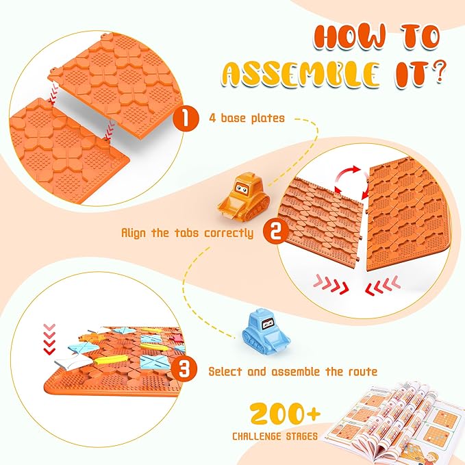 STEM Logic Road Builder Toys: Board Games Toys for 5 Year Old Kids Montessori Brain Teaser Puzzles Educational Learning Activities Toy for Kid Ages 3 4 6-8 12 Boys Girls Gifts (Orange, 50PCS)