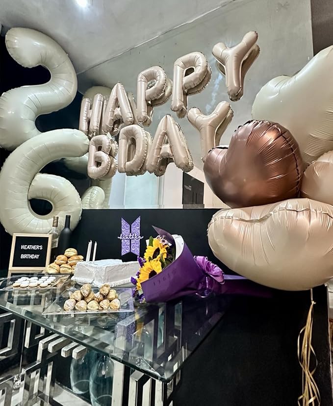 About This BEIGE NUMBER 6 BALLOON: Including 40 inch number balloons, 1 piece of glue dots, 2pcs inflating straws and... Read more