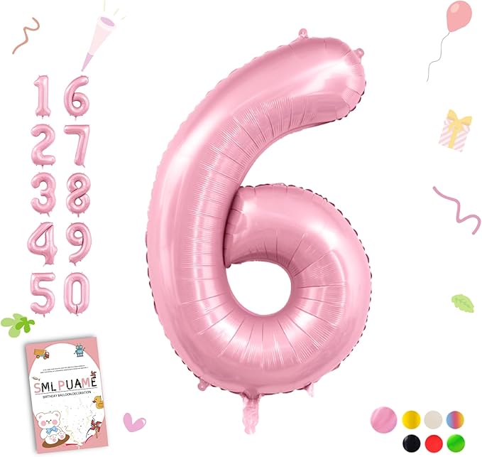 About This PASTEL PINK NUMBER 6 BALLOON: Including 40 inch number balloons, 1 piece of glue dots, 2pcs inflating straws... Read more