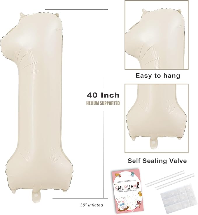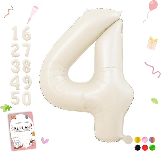 About This BEIGE NUMBER 4 BALLOON: Including 40 inch number balloons, 1 piece of glue dots, 2pcs inflating straws and... Read more