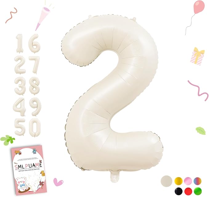 About This BEIGE NUMBER 2 BALLOON: Including 40 inch number balloons, 1 piece of glue dots, 2pcs inflating straws and... Read more
