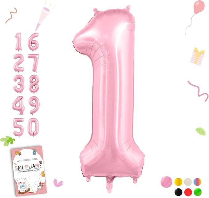 About This PASTEL PINK NUMBER 1 BALLOON: Including 40 inch number balloons, 1 piece of glue dots, 2pcs inflating straws... Read more