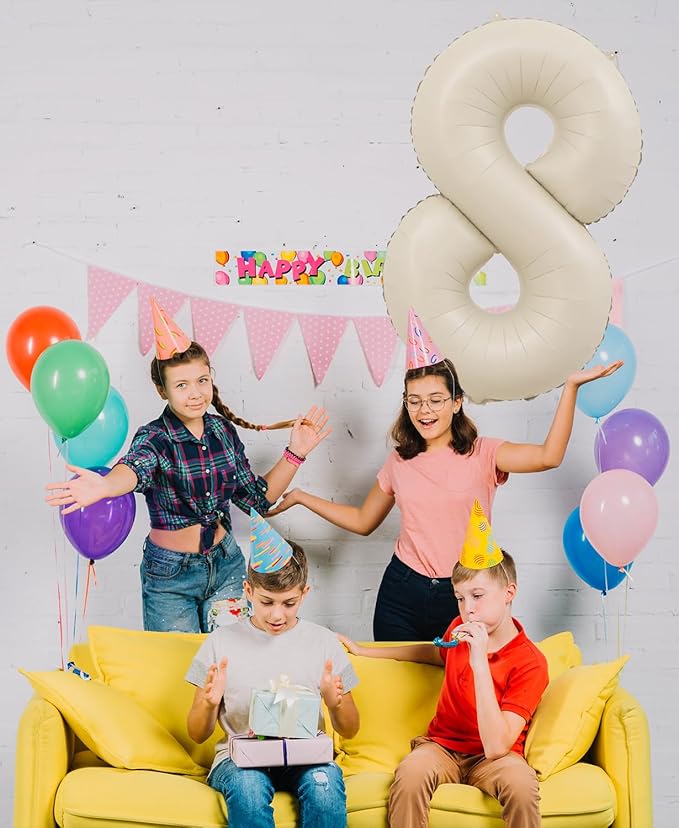 Smlpuame 40 Inch Beige Number 8 Balloons for 8th Birthday Decorations Boys Girl, Giant Self-Sealing Cream Foil Number 0-10 White Sand Balloon for Women Men Party Anniversary Baby Shower Supplies