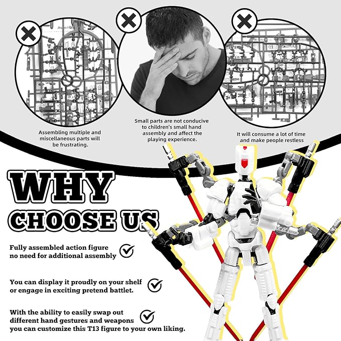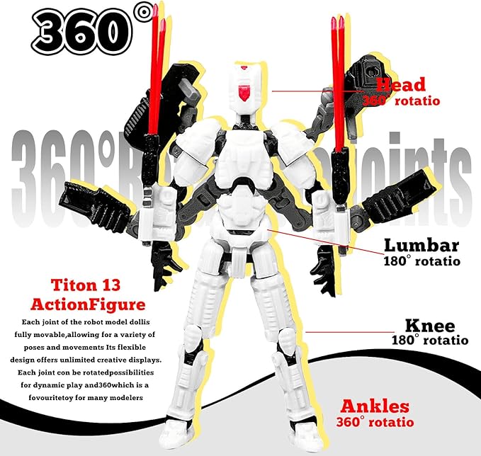 Assembly Completed T13 Action Figure,T13 mision 13 figuras originales 3D Printed Toys Nova 13 Action Figures Desktop Decorations for Game Lovers Toy (White, 8 Inch)