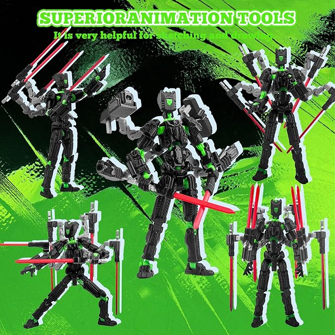 Assembly Completed T13 Action Figure,T13 mision 13 figuras originales 3D Printed Toys Nova 13 Action Figures Desktop Decorations for Game Lovers Toy (Black Green, 5.5 Inch)