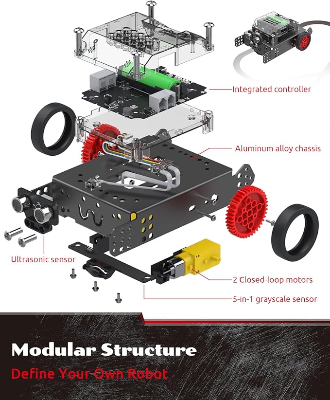 WhalesBot Rocky Smart Robot Car Coding & Remote Control Kit for Kids 8-16, STEM, Modular/Scratch/Python/C Programming, Educational Engineering Science Toy Set