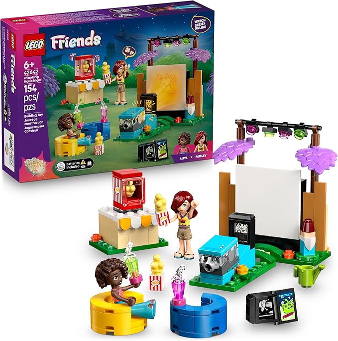 LEGO Friends Friendship Movie Night Pretend Play Building Toy - Interactive Storytelling Playset for Girls & Boys, Ages 6+ - Includes Paisley and Aliya Minidolls - Gift Idea for Birthdays - 42642