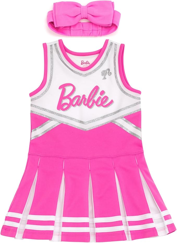 Barbie Girls Cheerleader Dress and Bow Outfit Set Toddler to Big Kid Sizes (2T - 14-16)