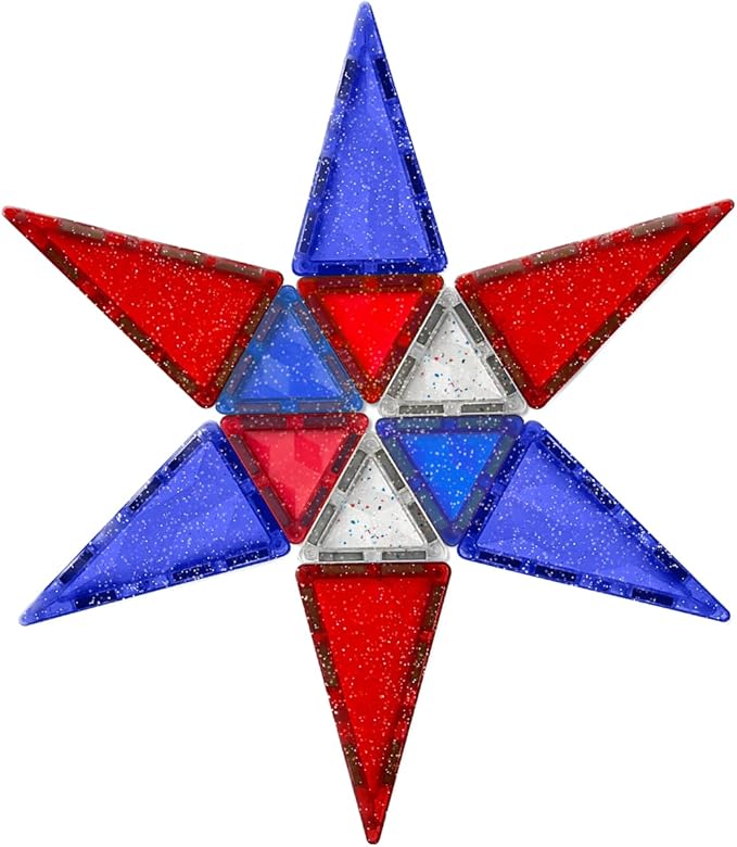 CreateOn Crayola Red, White & Blue Glitter PIP Magnetic Tiles, Magnetic Kids’ Building Toys, Classroom Sensory Blocks, STEM Learning Travel Toys for Boys and Girls, 27-Piece Set