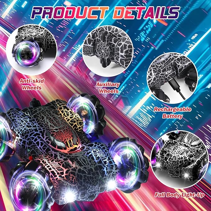 About This 2 Control Modes RC Car: This 4-wheel RC stunt car is equipped with cool whole body LED lights... Read more