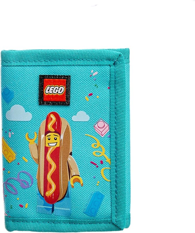LEGO Trifold Wallet, Kids Unisex Wallet for Boys and Girls, with Clear ID Window, Card and Cash Pockets and Secure Hook and Loop Closure, Hotdog Guy