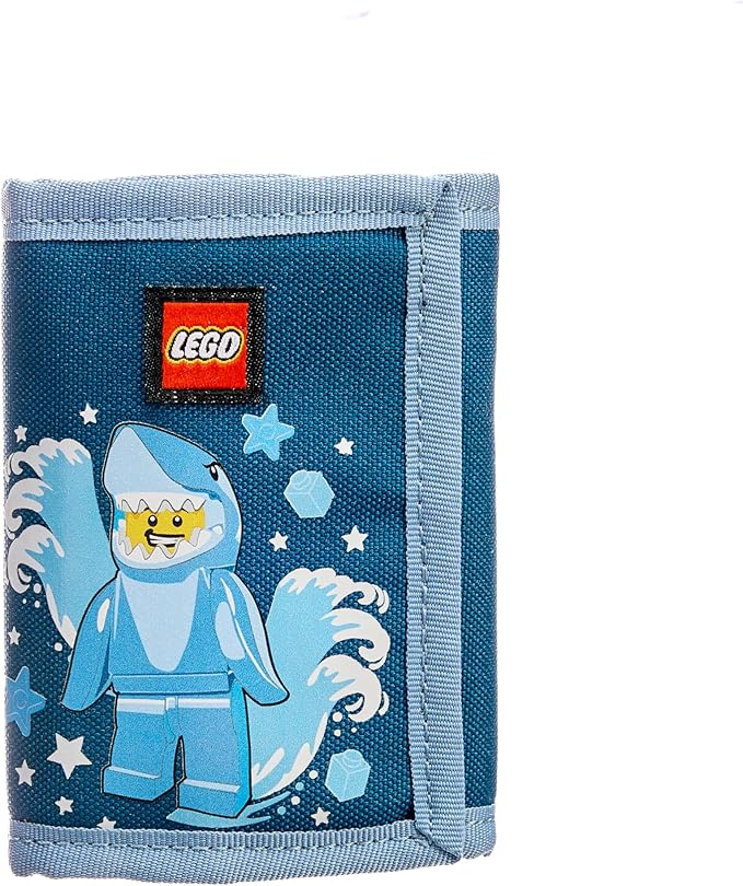 LEGO Trifold Wallet, Kids Unisex Wallet for Boys and Girls, with Clear ID Window, Card and Cash Pockets and Secure Hook and Loop Closure, Shark Guy