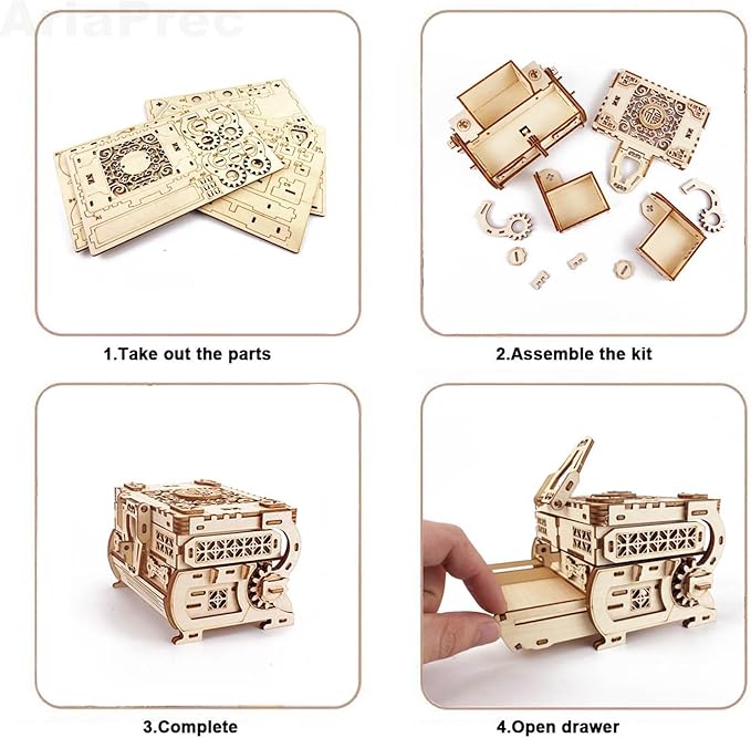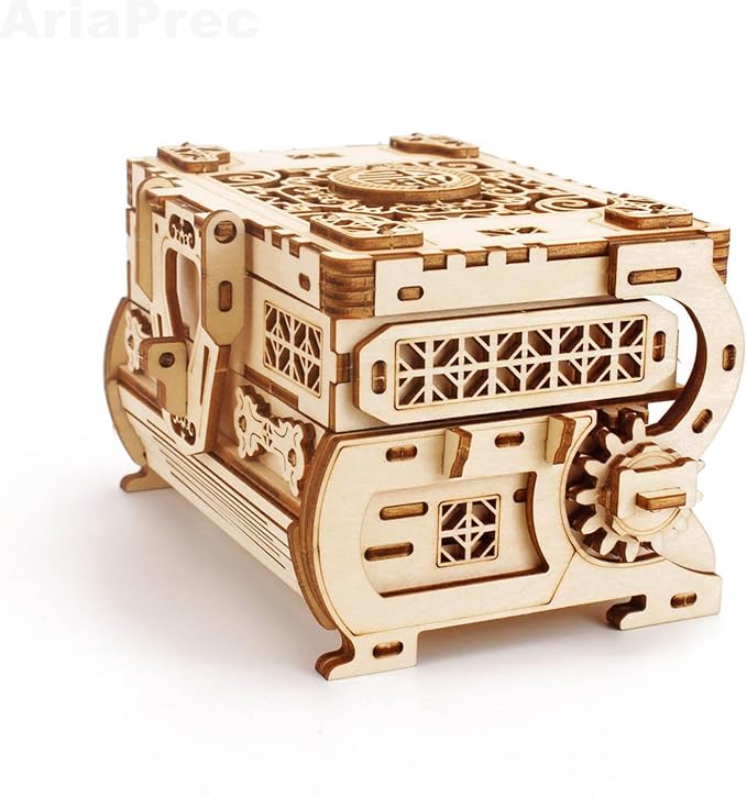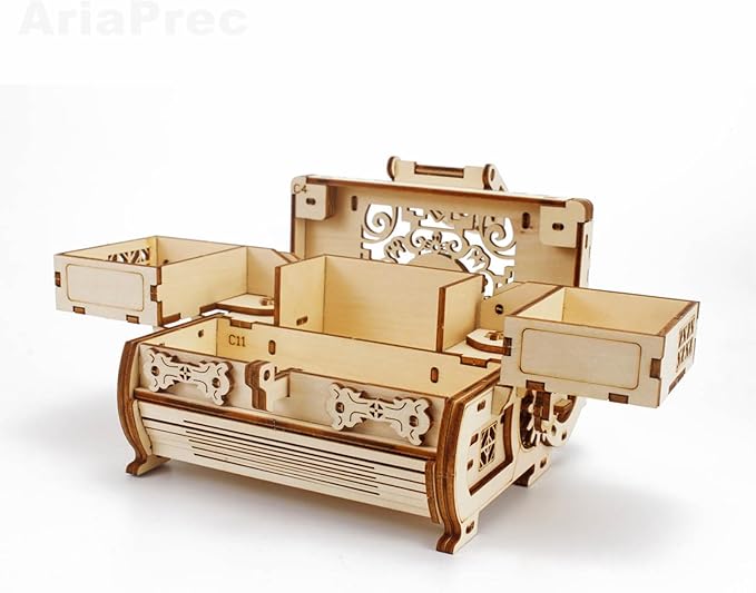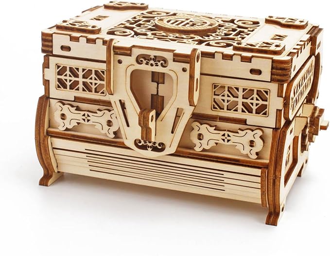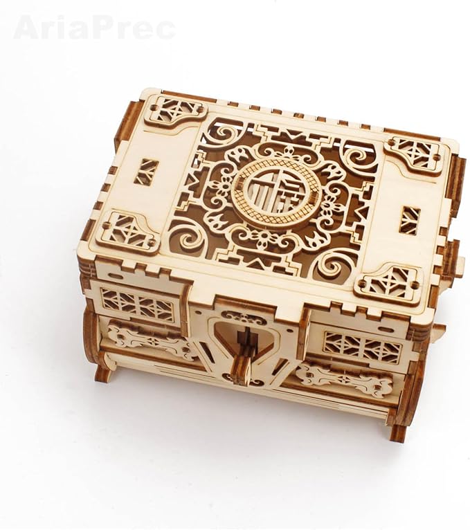 3D Wooden Mechanical Jewellery Box Puzzle - Antique Treasure Box with Exquisite Floral Carvings & Unique Mechanisms - DIY Decorative Gift for Puzzle Lovers
