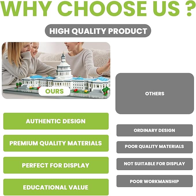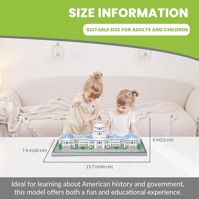 About This Building Block Details: This United States Capitol building blocks architecture set has 2800 pieces bricks. Measuring 5.9 in... Read more