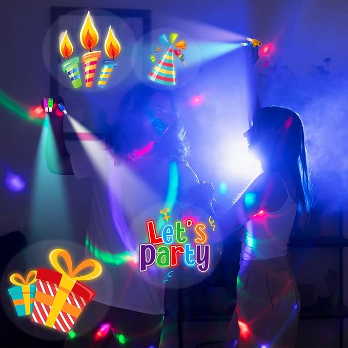 24PCS Happy Birthday Party Favors-LED Finger Lights:Glow-in-the-Dark Light-Up Toys Bulk for Kids,Colorful Birthday Theme Birthday Party Decorations Supplies,Goodie Bags, Classroom Prizes, Fun Gifts