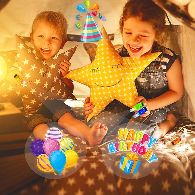 About This Colorful Birthday Theme Party Favors Toys: Come with 24 finger lights in 8 designs,each for 3pcs. Just press... Read more