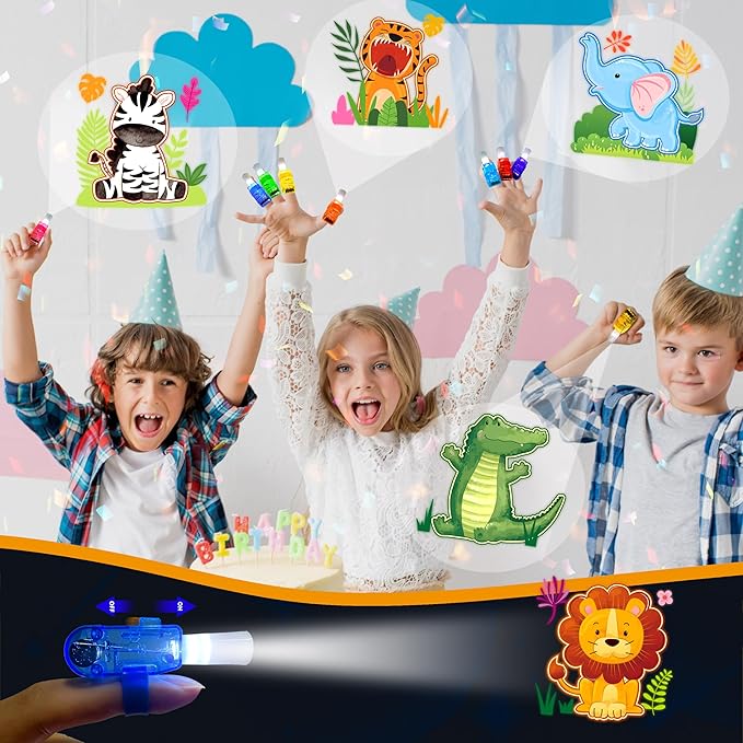 About This Jungle Safari Theme Party Favors Toys: Come with 24 finger lights in 8 designs,each for 3pcs. Just press... Read more