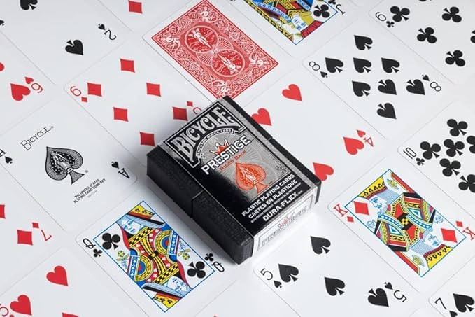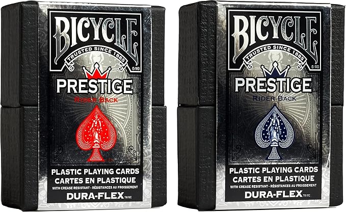 About This BUNDLE INCLUDES 2 DECKS OF PRESTIGE WATERPROOF PLASTIC PLAYING CARDS: This bundle includes 1 red deck and 1... Read more
