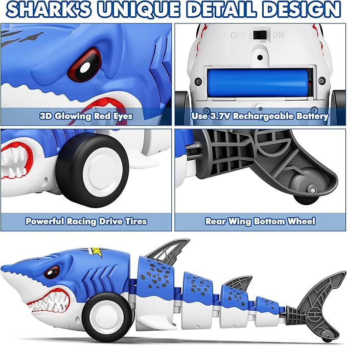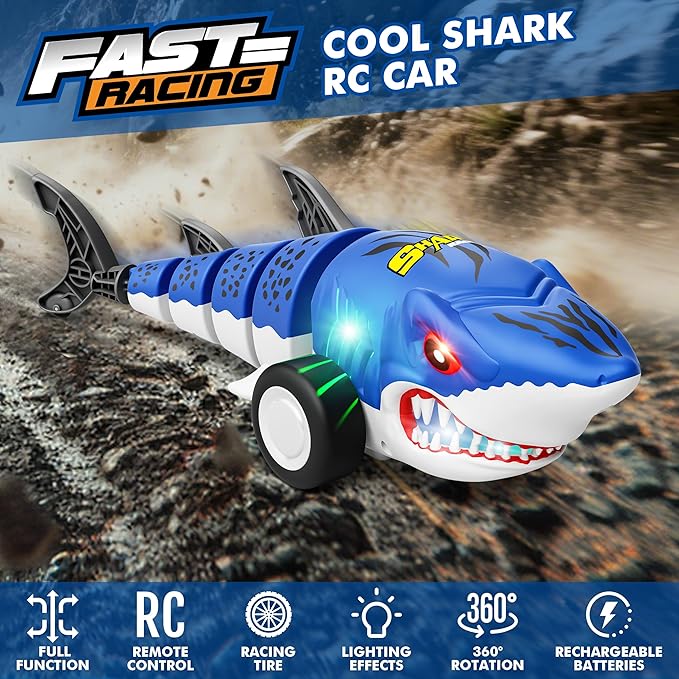 Remote Control Shark Car Toys for Kids,2.4GHz RC Cars Simulation Shark with Cool Light, 360° Stunt Drift & Most Terrains,Outdoor Toys for Birthday for 6,7,8,9,10-12 Boys Girls
