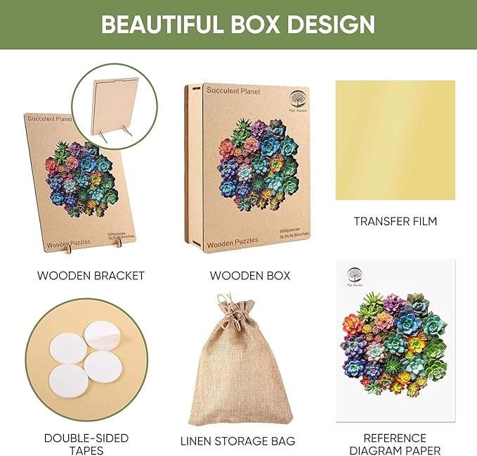 Mys Aurora Succulent Wooden Puzzles for Adults, 500 Piece Unique Shaped Wood Jigsaw Puzzles for Adults and Kids, Fun Challenging Puzzles Family Game Gift, Medium 16.9'' x 16.5''
