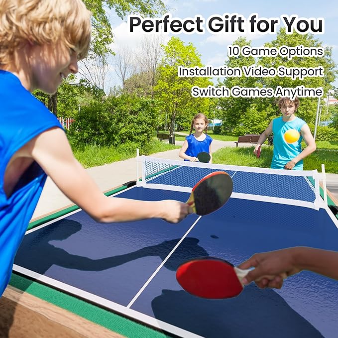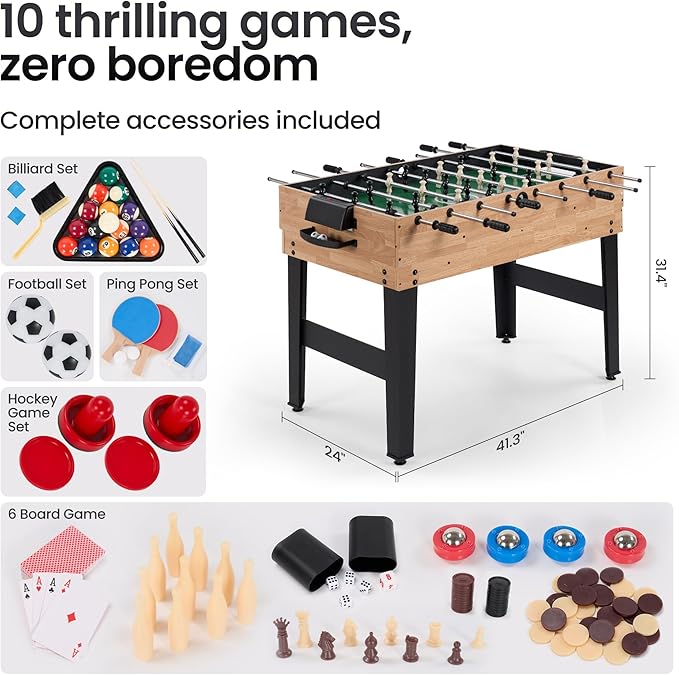 10-in-1 Foosball Table 48" Combo Game Table Ping Pong Table Air Hockey Table Pool Table Soccer Foosball All in One with Accessories for Indoor Outdoor Game Rooms and Family Game