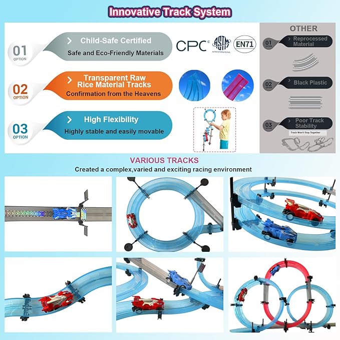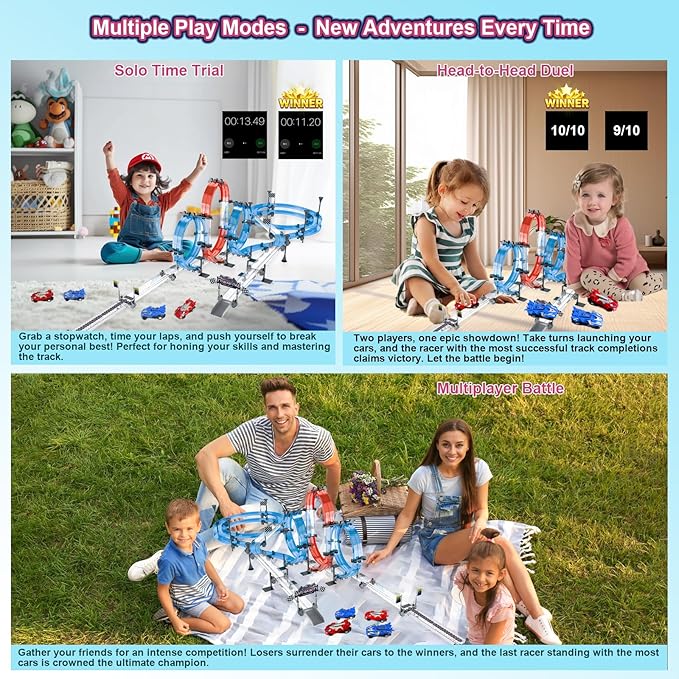 Toy Car Racer Track Set with 4 Pull-Back Cars, 360° Loops, Cross Overpass & Curves, High-Speed Racing Game Track for Boys Kids Birthday Gift Ages 6-12