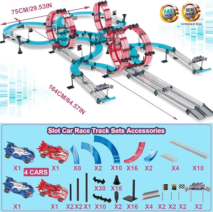 About This ✨🏁 【Anti-Gravity Design & Extra-Long 984CM (32ft) Race Track】Features a 984CM (32 feet) ultra-long racing track that supports... Read more