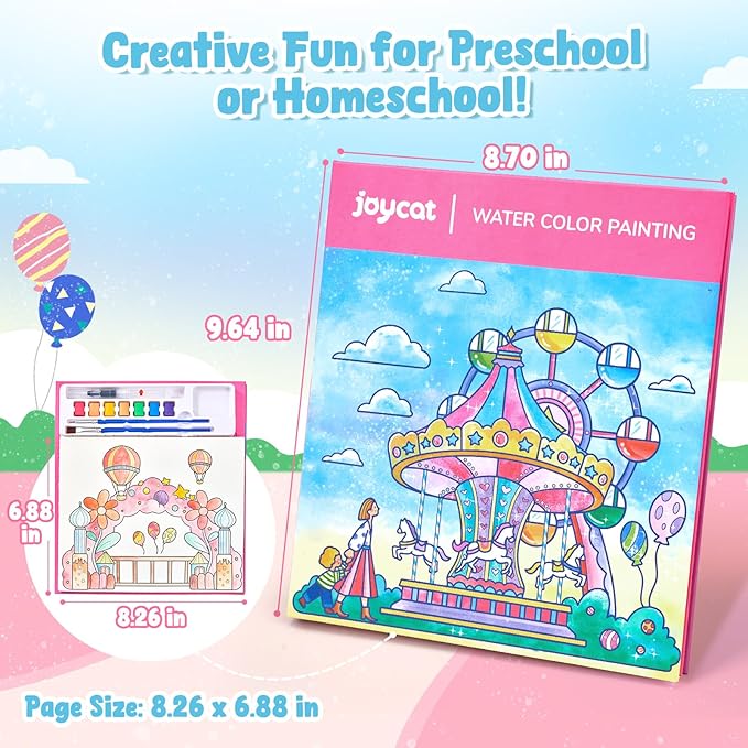 JoyCat Paint with Water Coloring Books for Toddlers, Watercolor Painting Sets for Kids Ages 3-5 4-8, Arts and Crafts Drawing Activities Toy Birthday Gift for Boys Girls (Funfair)