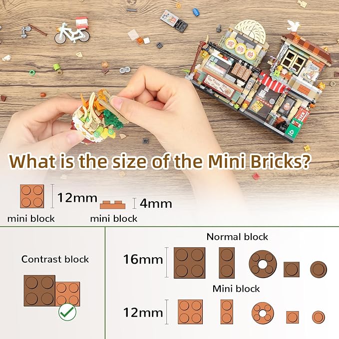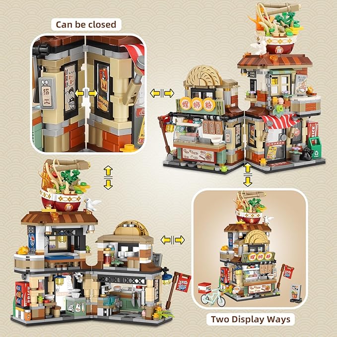 Street View Noodle Shop Mini Building Blocks, MOC Creative Building Toys Model Set for Girls 7-9 Years Old, 870 PCS Simulation Architecture Construction Toy, Gift Idea for Kids Adults