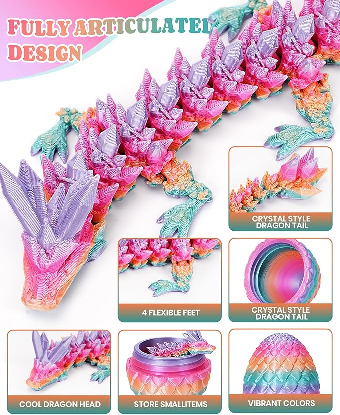 • 🐉🌟Flexible Articulated Design – Imagination Unleashed: Fits perfectly in your palm—squeeze, twist, and fidget to melt away boredom. Kids can invent epic dragon adventures, endless ways to play, while adults enjoy a soothing break anytime, anywhere. Design Copyright: Cinderwing3D.