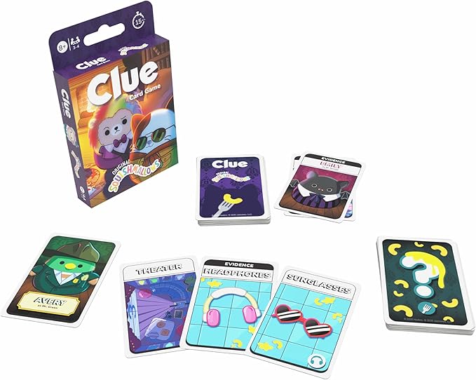 USAOPOLY Clue Card Game: Original Squishmallows, Mystery Party Game for Kids & Families, Fun Detective Challenge, Solve Who Took Winston’s Mac n’ Cheese, Ages 8+, 3-4 Players, Fast-Paced Fun