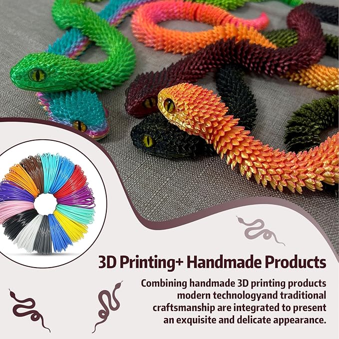 20.2 Inch 3D Printed Snake Toys,3D Printed Animals,3D Printed Toys,3-D Print Articulated Viper Collectible for Home Office Executive Desk Decoration (Rainbow)