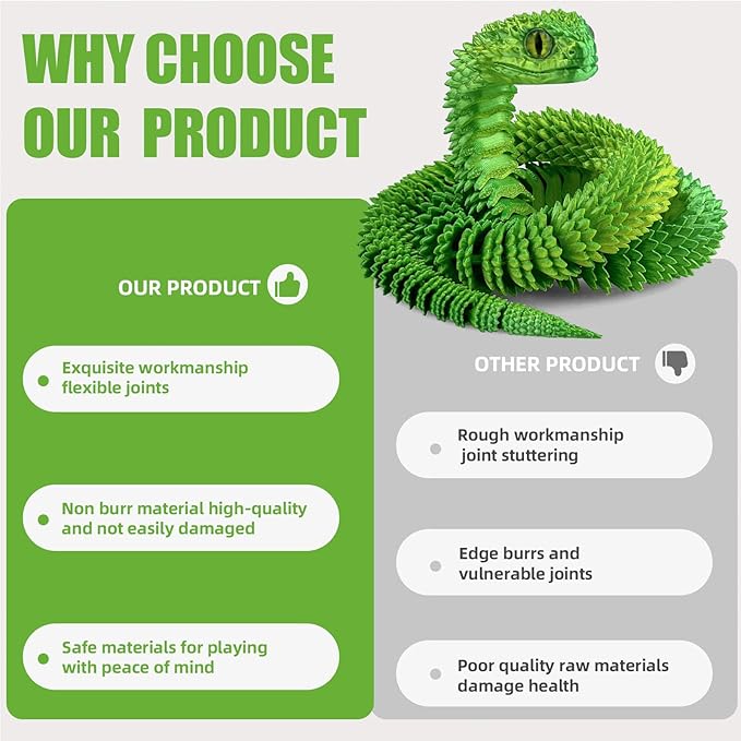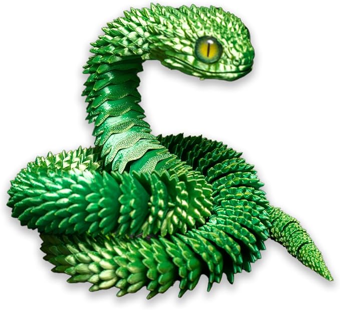 20.2 Inch 3D Printed Snake Toys,3D Printed Animals,3D Printed Toys,3-D Print Articulated Viper Collectible for Home Office Executive Desk Decoration (Laser Green)