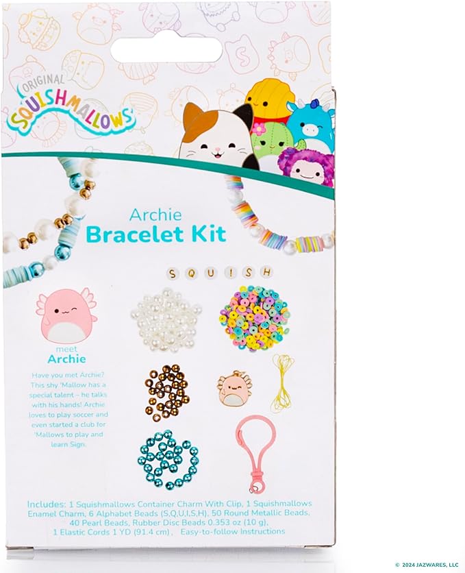 Squishmallows Original Archie The Axolotl Bracelet Kit, Friendship Bracelet Kit, Charm Bracelet Making Kit, Gifts for Girls, for Boys, Craft Kits