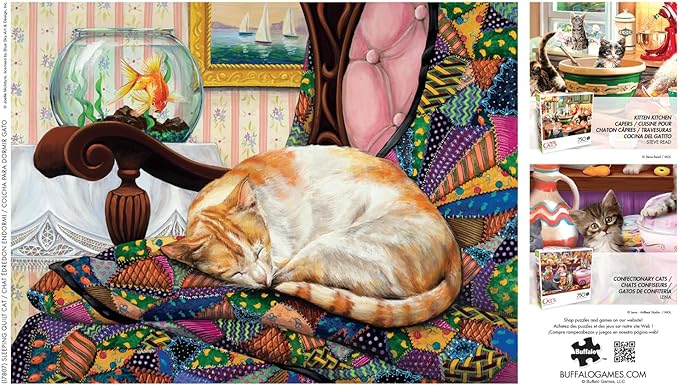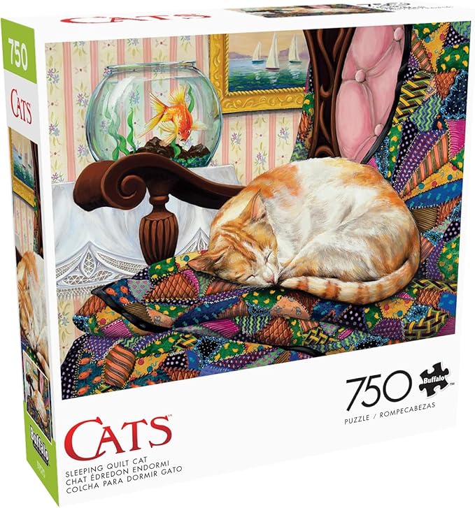 Buffalo Games - Joelle McIntyre - Sleeping Quilt Cat - 750 Piece Jigsaw Puzzle for Adults - Challenging Puzzle Perfect for Game Nights - Finished Size is 24 x 18