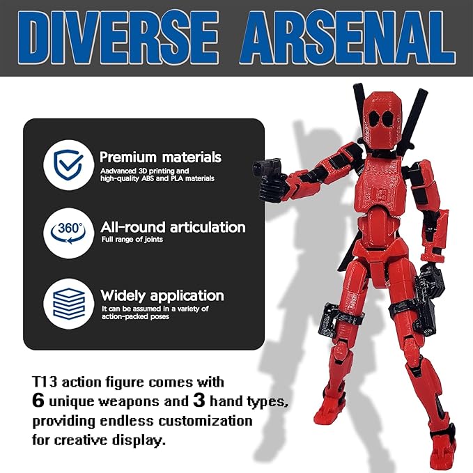 • Full range of joints: T13 fully jointed action figure, Each joint is fully movable and can be put into a variety of postures and actions. With its flexible design, it offers endless possibilities for dynamic play and creative presentation. It can be assumed in a variety of action-packed poses, making it an engaging toy for imaginative play and storytelling. Plus, it doubles as a cool tabletop decoration.